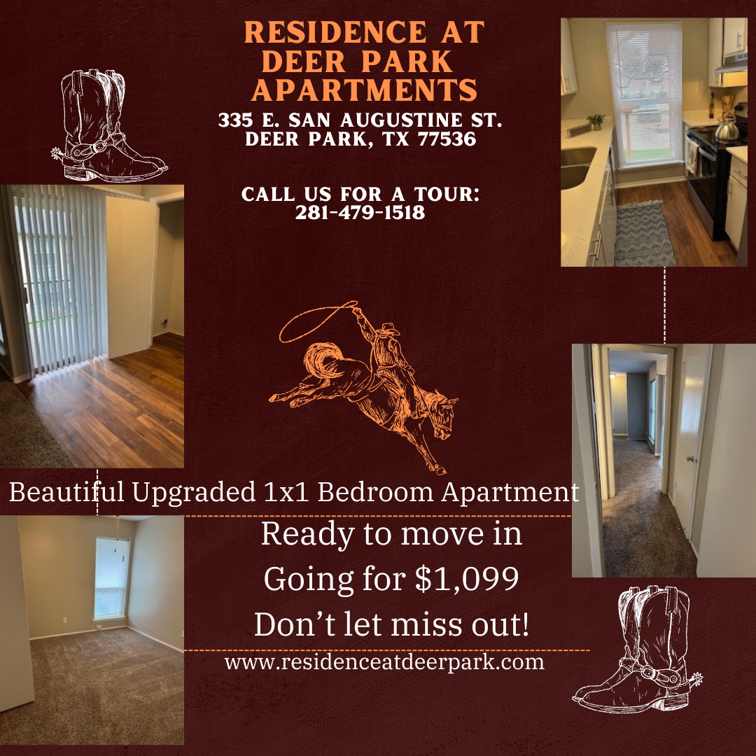 • 🎉 Now Leasing in Deer Park — Ask About Reduced Rents & Move-In Specials!Specials